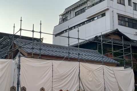 新築物件で三州いぶし瓦を施工致しました。軒先は2寸一文字軒瓦を取り付け棟は4段とスッキリ仕上げました。