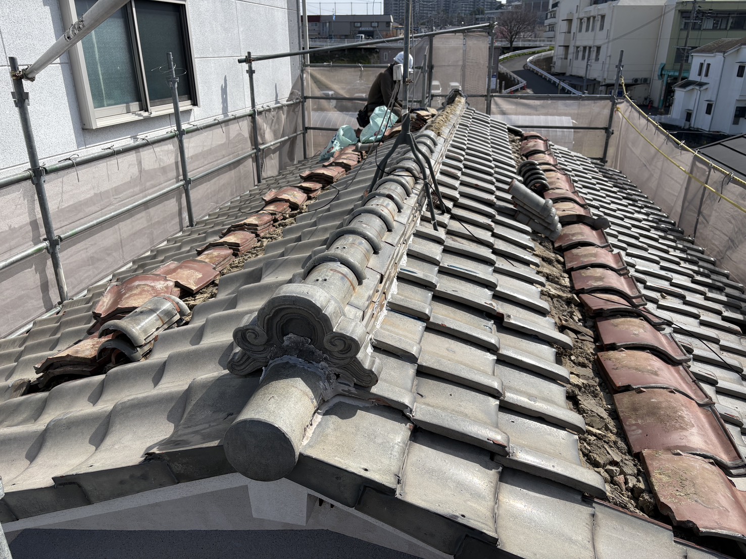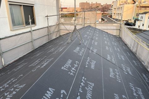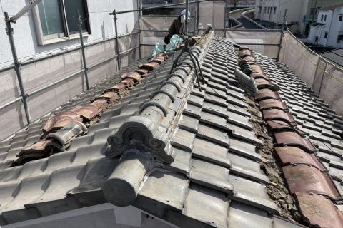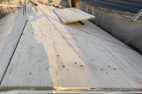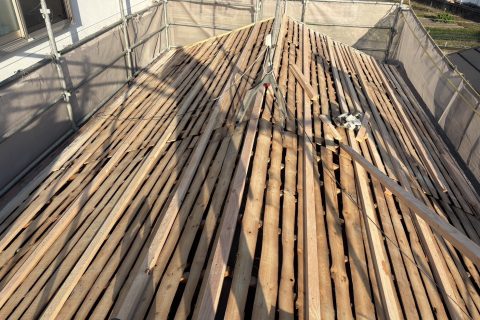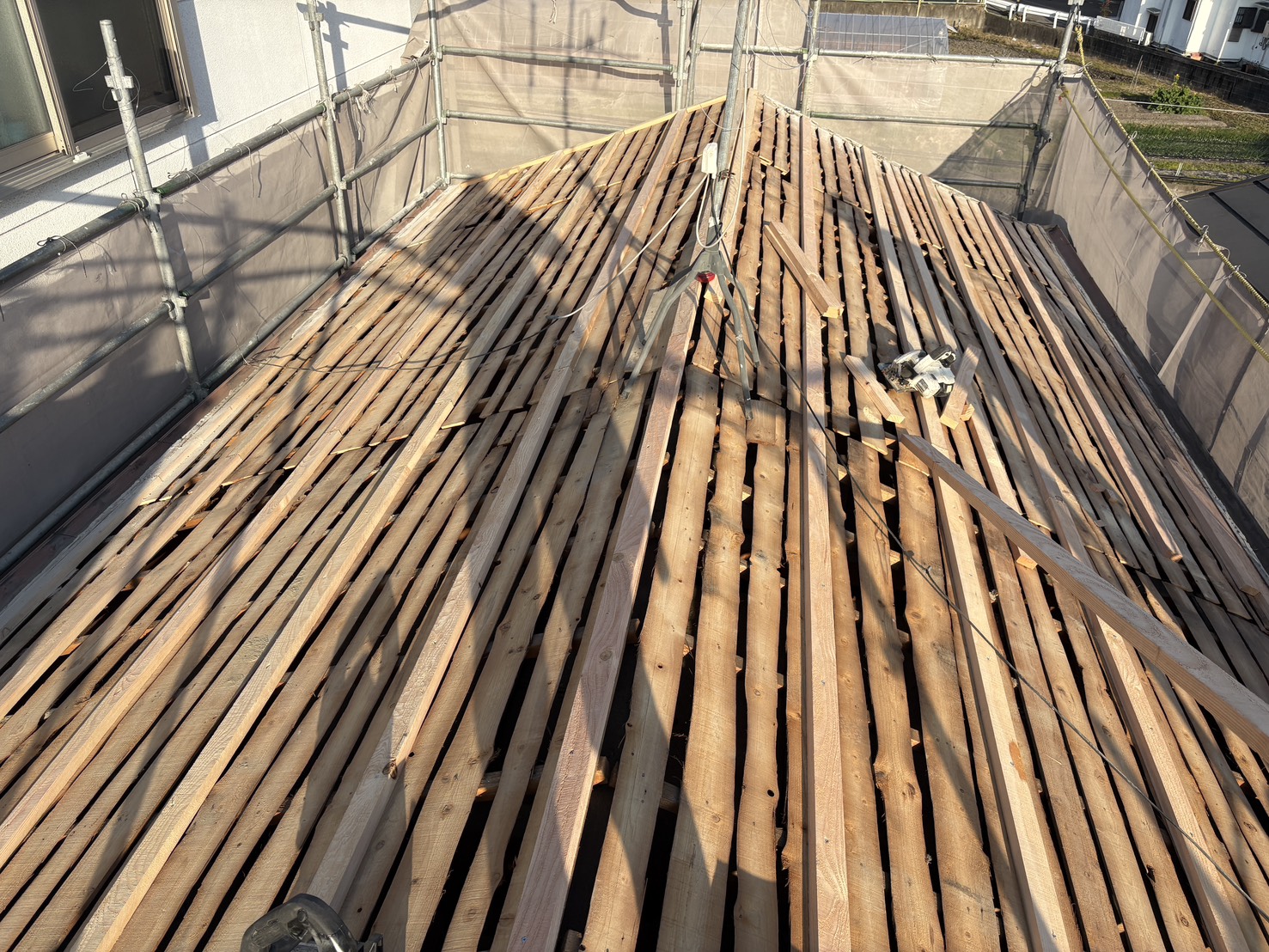 瓦のズレによる雨漏りで板金屋根への葺き替え工事を行いました。